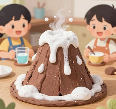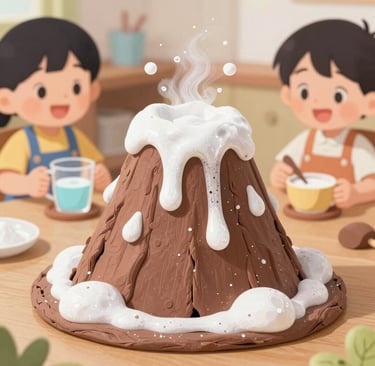 Il clou del nostro percorso! I bambini hanno costruito il corpo di un vulcano con bottiglie di plastica e cartapesta, per poi farlo eruttare con una spettacolare reazione tra aceto + tempera rossa, sapone liquido rosso e bicarbonato
